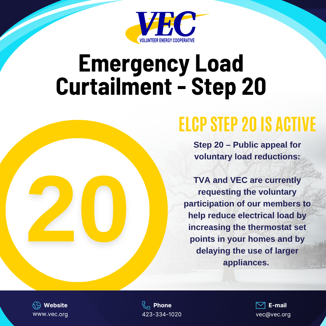• Step 20 – TVA and VEC will make a public appeal for voluntary reduction in electric usage.